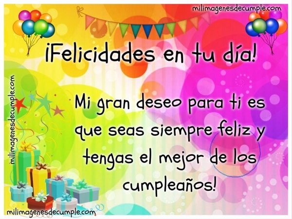¡Felicidades en tu día! Mi gran deseo para ti es que seas siempre feliz y tengas el mejor de los cumpleaños!.