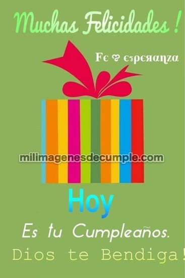 "Muchas felicidades! Hoy es tu cumpleaños, Dios te bendiga!" imagen de cumpleaños con frase para regalar a los cumpleañeros que conozcas a través de Facebook, o bien, imprimirla para anexarla al regalo que le harás en su día!, para eso debes descargarla.