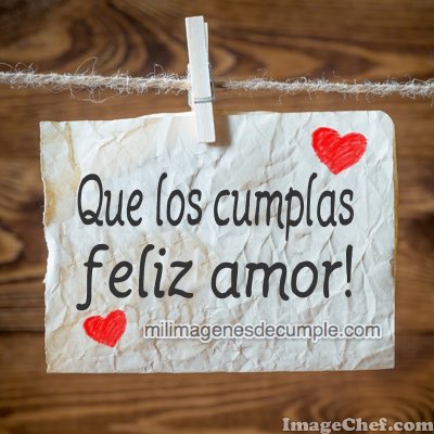 En esta oportunidad les queremos dejar este modelo de imágenes de cumpleaños para que puedan felicitar a su pareja en este día tan especial. Como pueden ver, es una imagen muy linda donde hay una nota colgada con un broche, y en ésta está escrita la siguiente frase: Que los cumplas feliz mi amor! Esperamos que les haya gustado esta imagen y los invitamos a que la descarguen gratis.