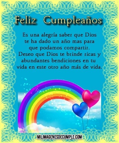 "Feliz Cumpleaños. Es una alegría saber que Dios te ha dado un año mas para que podamos compartir. Deseo que Dios te brinde ricas y abundantes bendiciones en tu vida en este otro año más de vida".