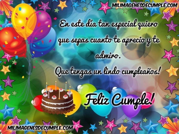 En este día tan especial quiero que sepas cuánto te aprecio y te admiro. Que tengas un lindo cumpleaños!.